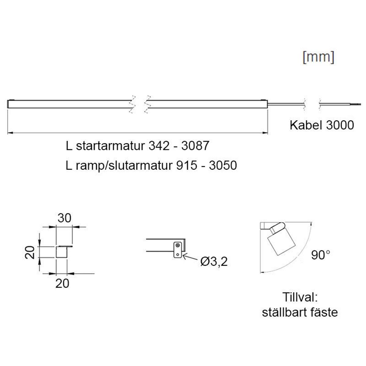 Egenskaper Smäcker och supertunn design LED 48VDC filtrerad 2200 / 2700 / 3000 / 4000K standard 230V till extern driver Förberedd för rampning, maxlängd per matning 15m Tillval: Tunable white 2700-6500K Tillval: Andra färgtemperaturer eller RGB on/off, DALI eller Casambi Bilder
