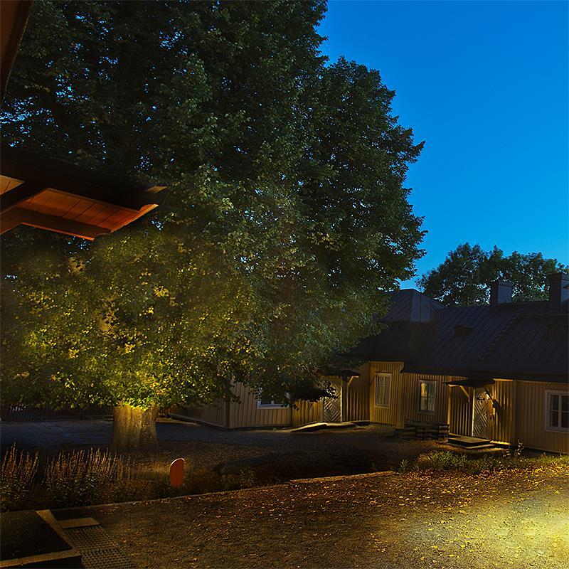 Som stolpbelysning för att lysa upp miljön i lekparkerna och skolgårdarna har vi använt strålkastaren Xeon 2. Xeon är en perfekt strålkastare för belysning av parker, gator eller vägar och finns i tre olika storlekar. Strålkastaren har fem olika optiker för en bra ljusfördelning och monteras på stolpe eller vägg.